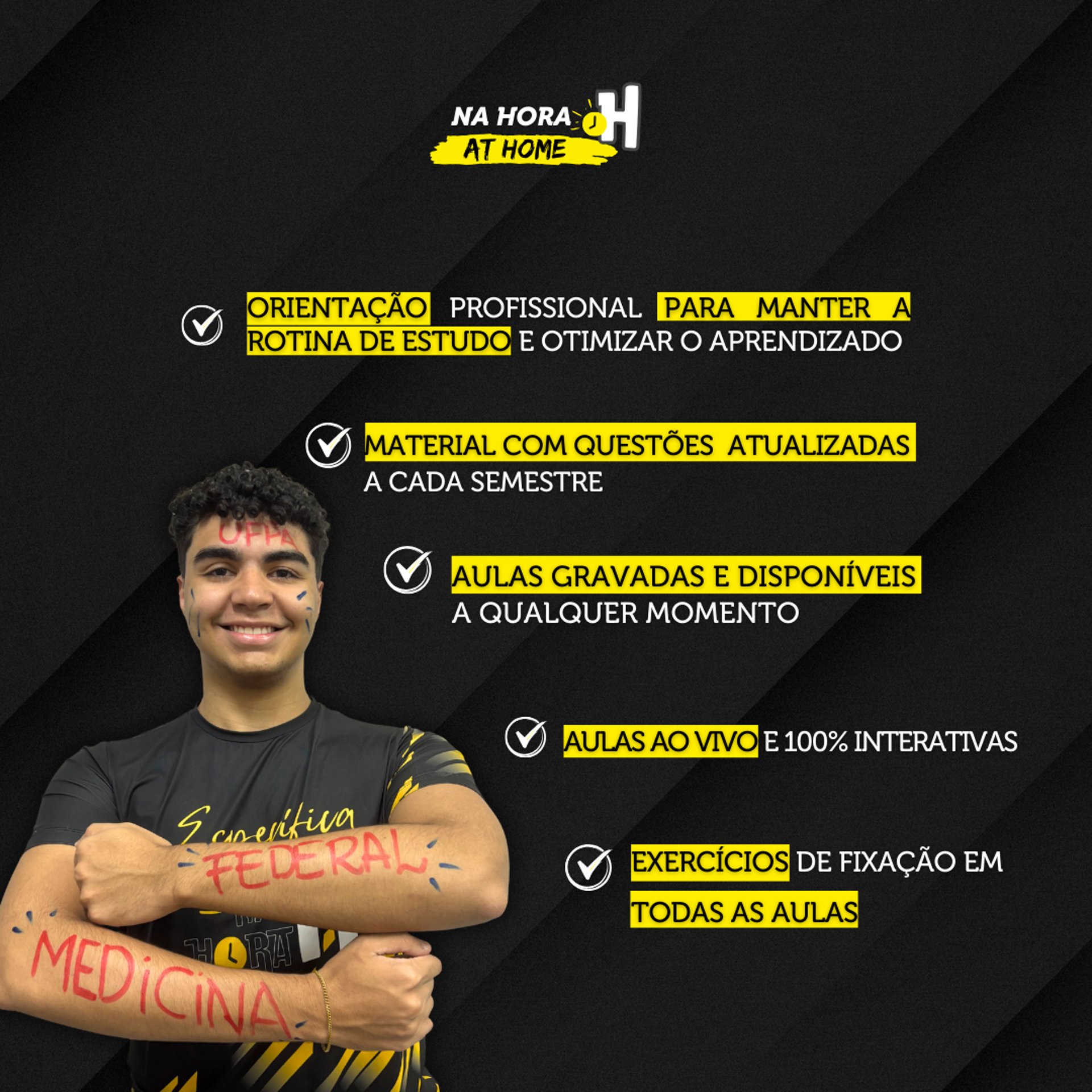 Personalize o seu plano conforme as suas necessidades. Selecione a área do conhecimento que deseja ou opte pelo nosso PLANO FULL, que te dá acesso a todas as disciplinas e garante todas vantagens de ser Na Hora H at home.